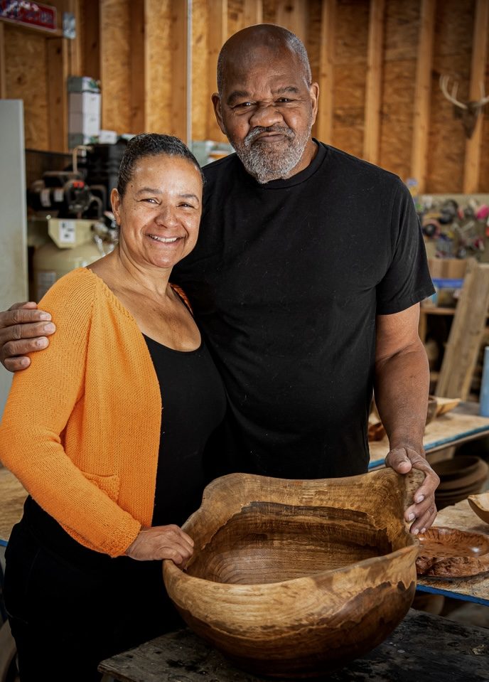 Nathan Favors started his career as an artist 25 years ago. Before that time, he had grown to know wood through his tree removal and landscaping business. But he fell in love with turning wood when he saw it for the first time at a demonstration in 2000. His wood turning hobby quickly grew into a full-time pursuit. Working in conjunction with his wife, Mariella, Nathan loves to preserve and showcase the beauty that can be hidden in raw wood. The couple has a large supply of local and exotic wood and ample knowledge to explain the features and intricacies of each. Nathan’s preferred woods are maple, walnut, ash, cherry, oak, manzanita, and buckeye, but he also works with exotic woods from all over the world including cocobolo, bubinga, eucalyptus, mora, and jarrah from Australia, Africa, and Central and South America.