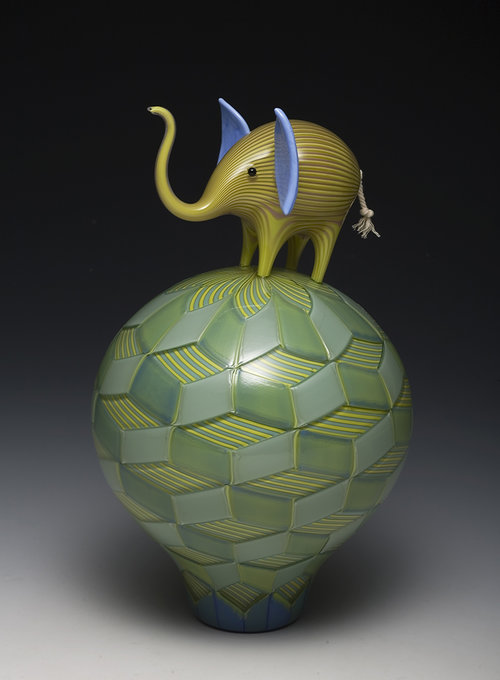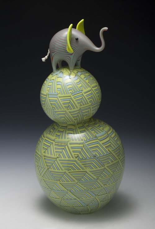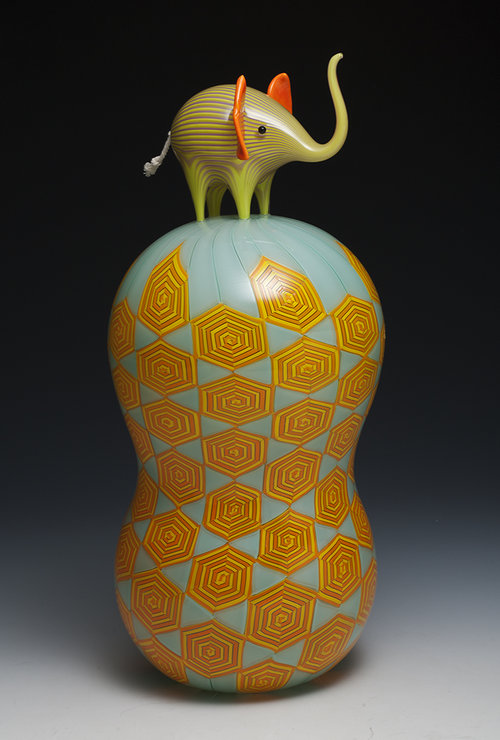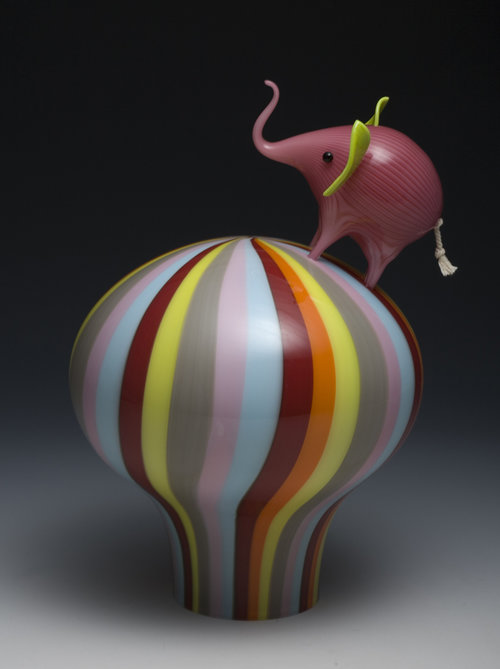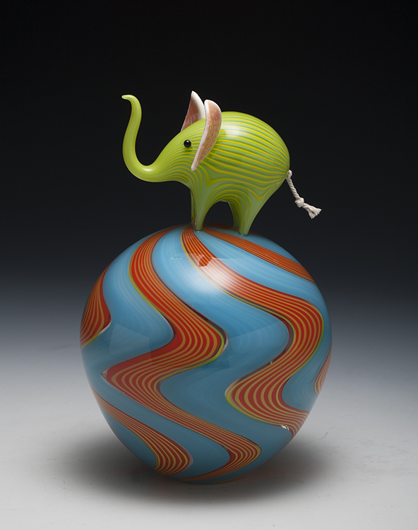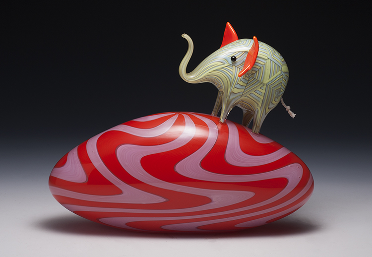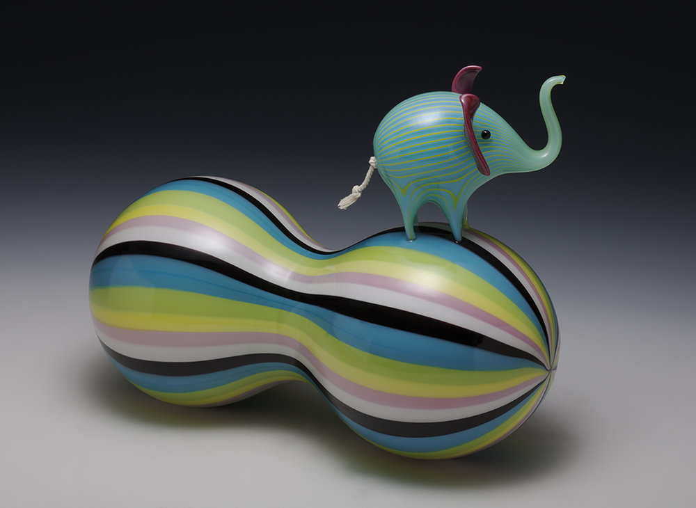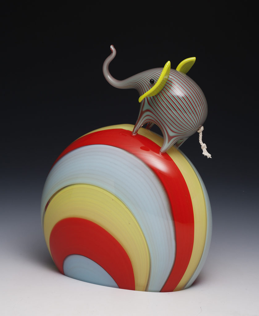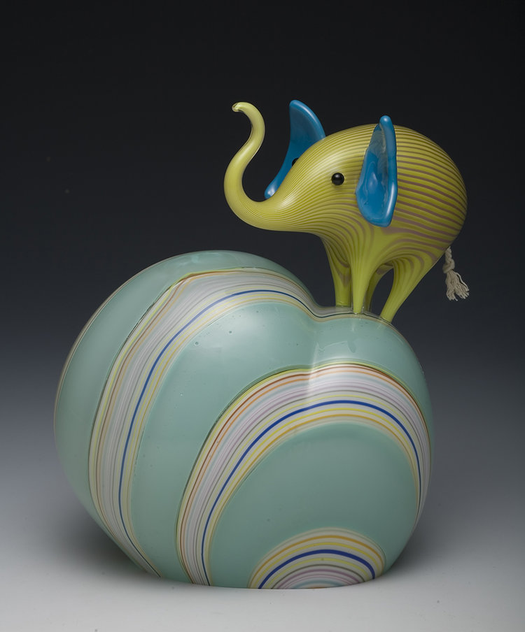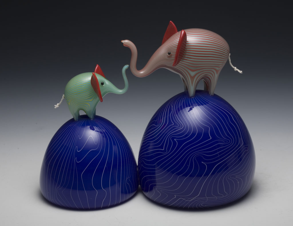 Animals, color, memory, and pattern. Much of my recent work centers on elephants due to their unique role as beloved childhood toy, popular decorative figure with a strong history in glassmaking, and a perilously threatened species.