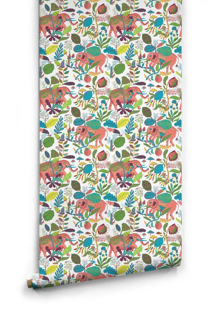 A framed piece of elephant wallpaper from my bedroom as a child.