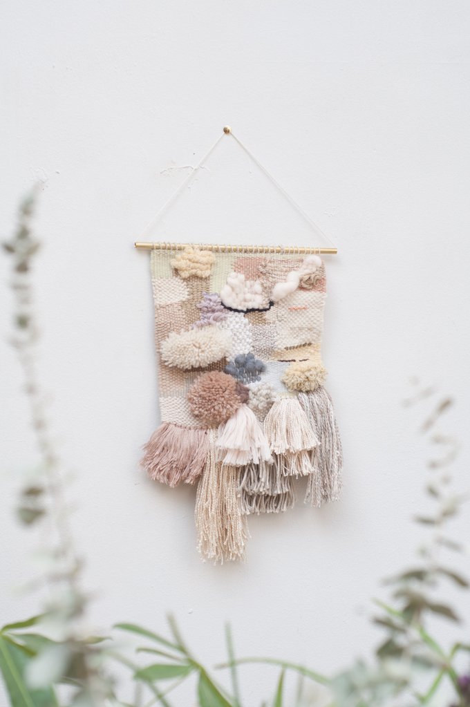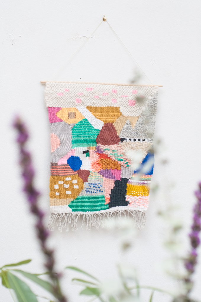 I recently created a textural wall tapestry with patches of neutral fibers which was really different for me because I usually work with intensely bright and highly contrasting tones. It was fun to experiment with tonal restraint. This piece is currently for sale at Young and Able in NYC. Shop more HERE.