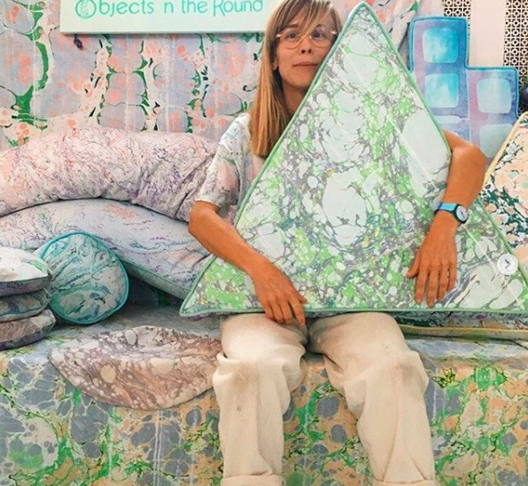 Christin Ripley in Catskill, NY. Her brand, Objects n The Round offers meticulously crafted hand made marbled pillows, garments, paper and accessories. I visit her work every summer at a craft fair I do, Hudson River Exchange.