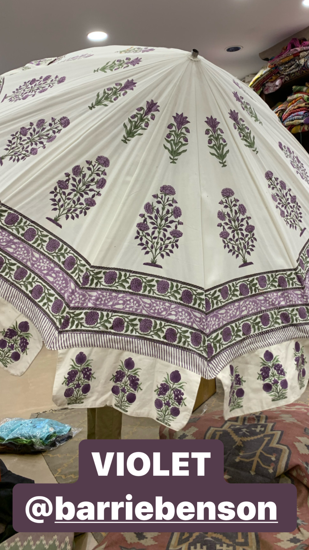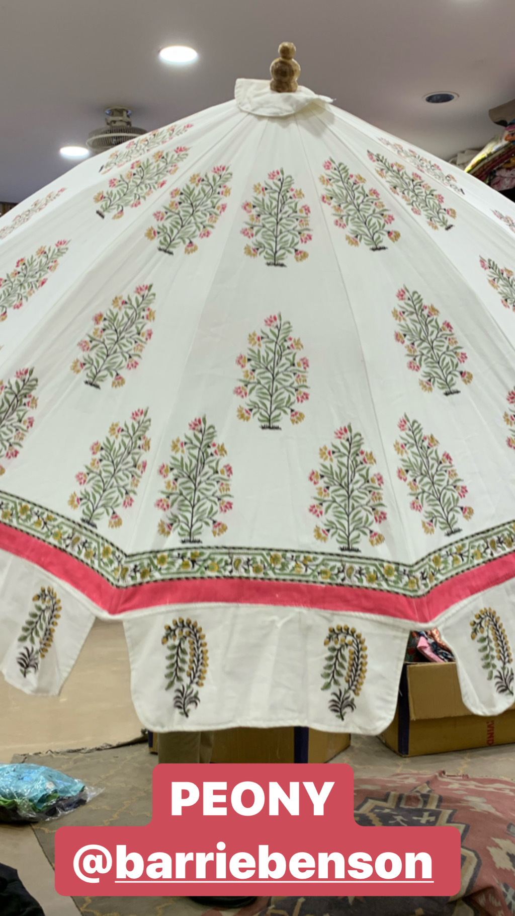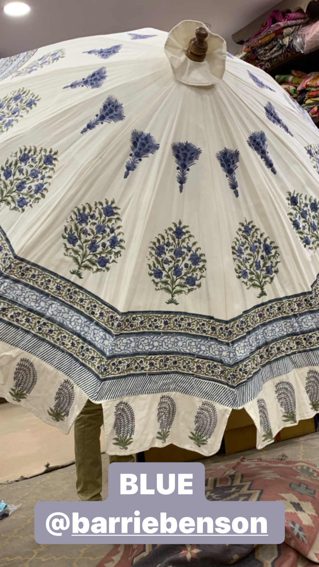 My friend, fellow designer and traveling companion Barrie Benson and I came across the most exquisite hand blocked garden umbrellas.