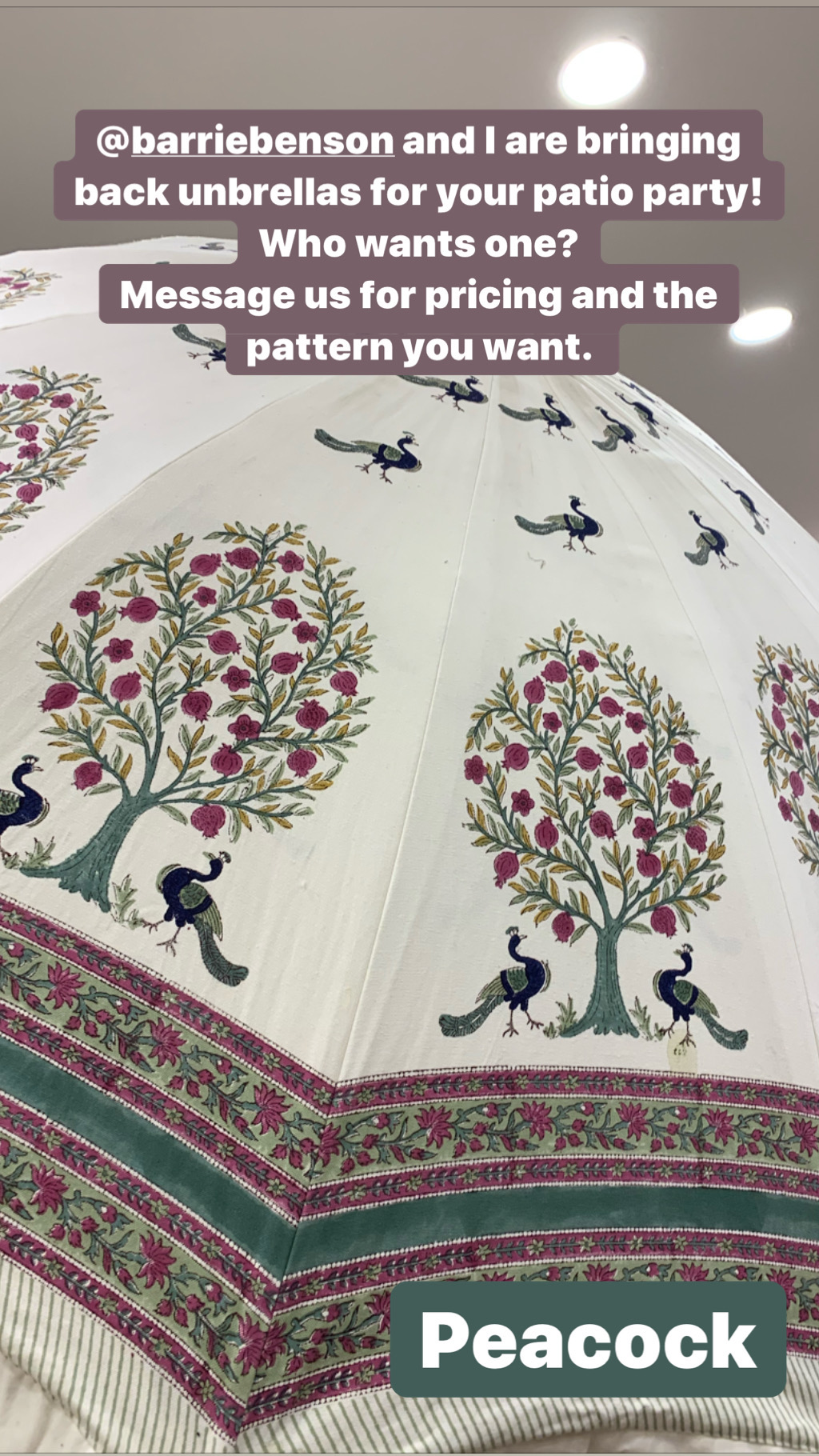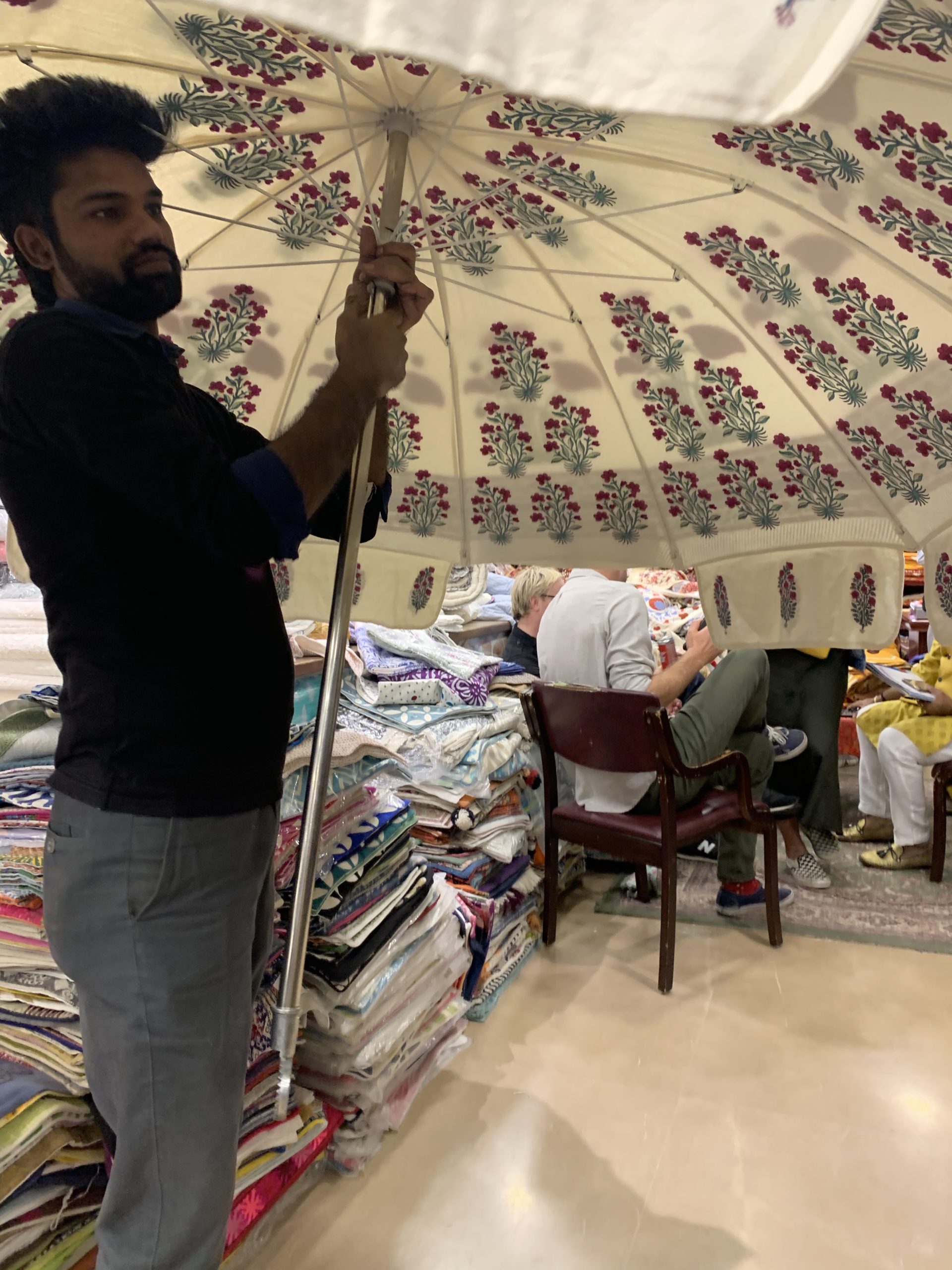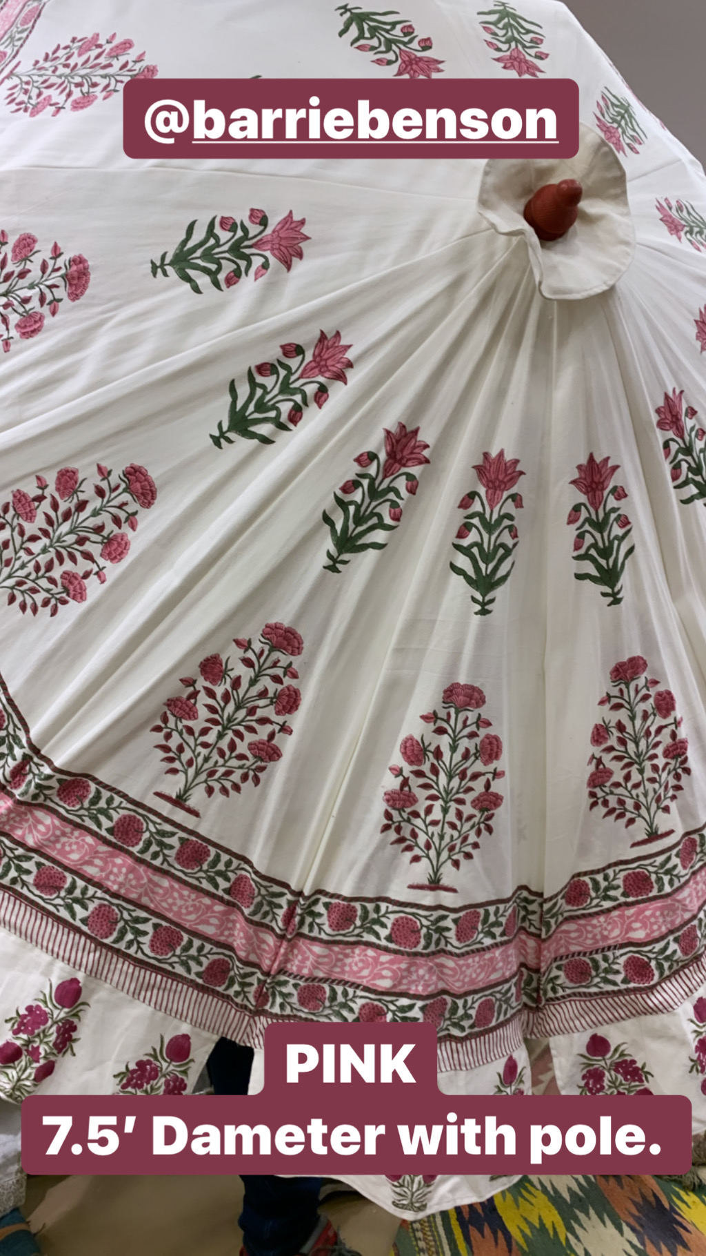 My friend, fellow designer and traveling companion Barrie Benson and I came across the most exquisite hand blocked garden umbrellas.