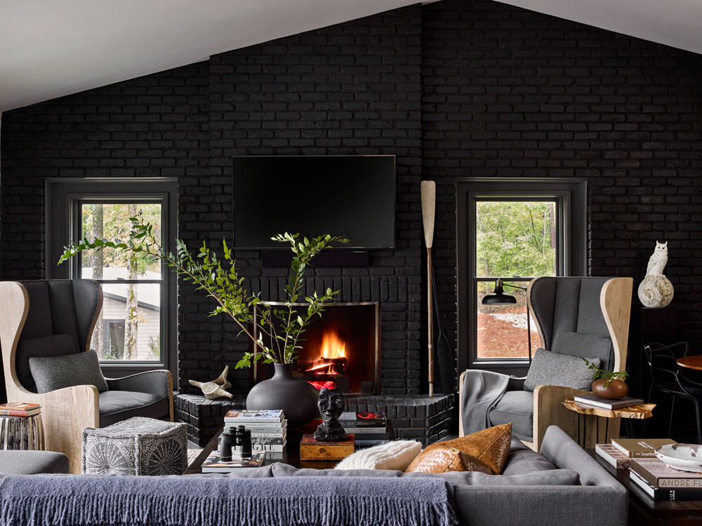 It seems like everyone is at the beach, their lake house or mountain retreat these days. This one via Atlanta Homes & Lifestyles is dark and dreamy.