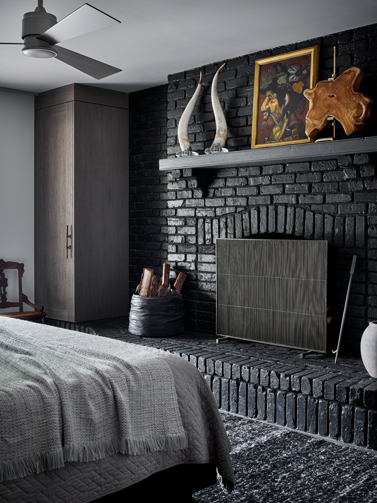 At the second property they viewed, which would become their new getaway, the allure was so strong that Quinn immediately launched into creating new renderings for the existing rustic hunt cabin. And within just a few hours, his transformative vision for the place was complete: raising roofs, rearranging porches, adding a guest house—all the while giving the getaway an undeniable contemporary vigor. Shortly after, Parrish took the reigns to oversee the interior design; in the meantime, “every wall, wire and pipe on the inside of the house was replaced,” says Quinn. “We knew it would be easier to start from scratch.”