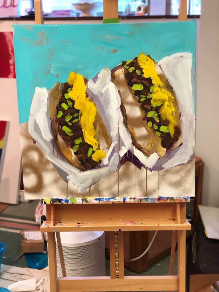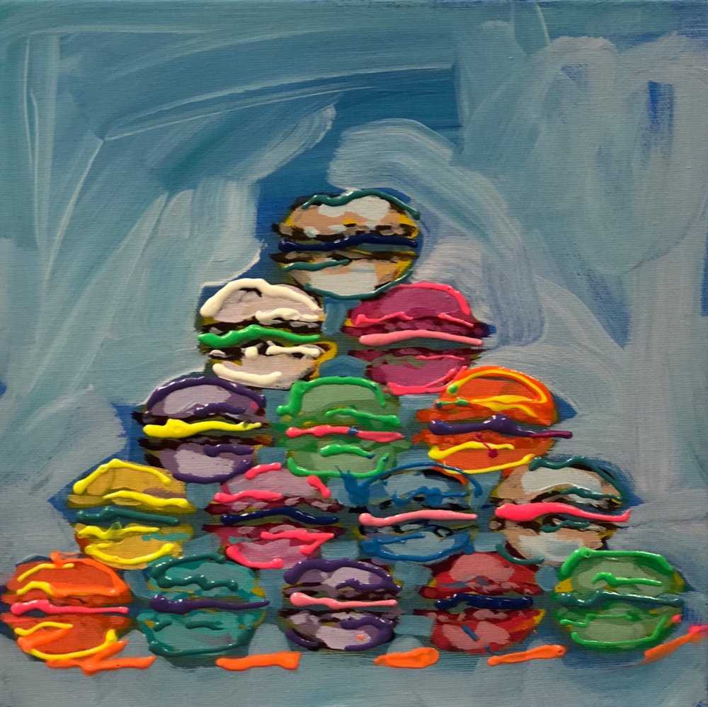 Her color pop culture pieces reflect our times and are just happy.