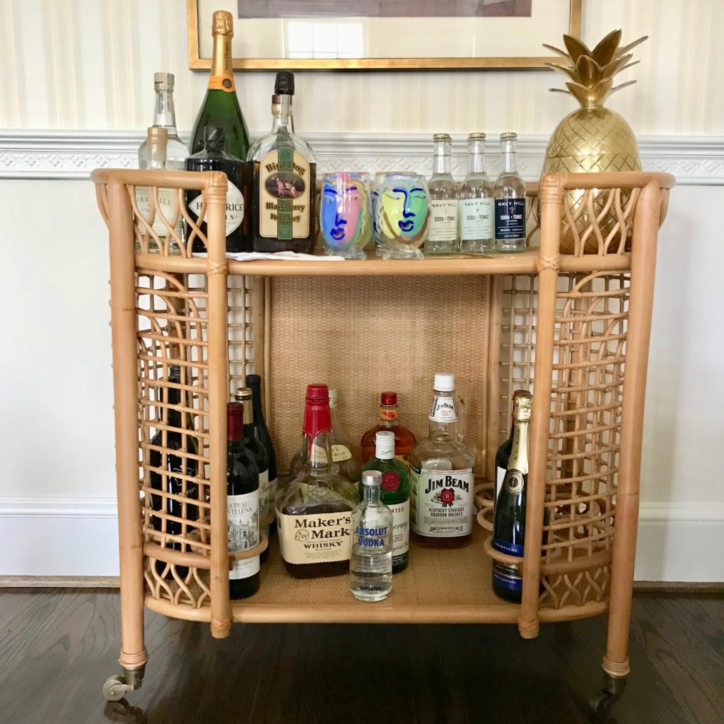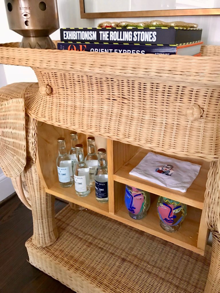 IRIS APFEL RATTAN MOBILE CART – “My mother was a big influence; she was exceedingly chic,” said interior designer and fashion icon Iris Apfel, whose exclusive, handmade Iris Apfel Rattan Mobile Bar Cart exhibits its own retro-chicness like a 1960s mid-century Palm Beach find. In a natural color, it’s from our Iris Apfel Capsule collection. This two-tier rolling cart offers generous space for barware and snacks and holders for bottles; it moves easily on caster wheels.