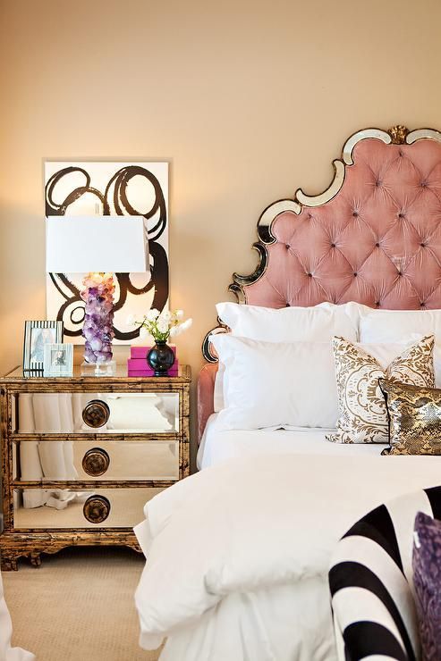 - Mirrored headboard accents