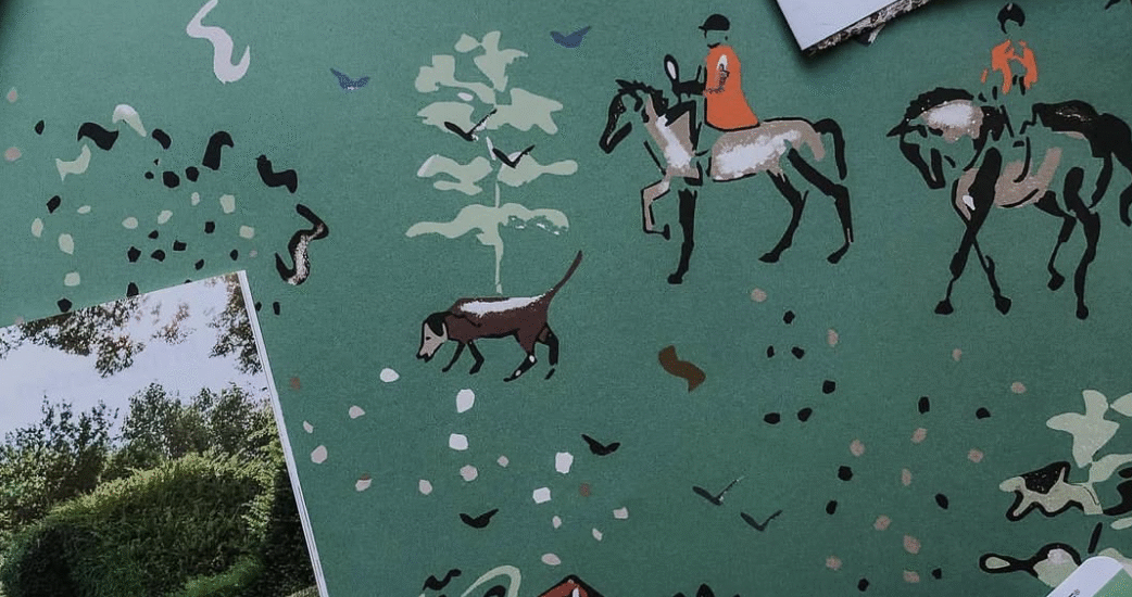 Happy Wallpaper Wednesday! Continuing the Year of the Horse theme, Farm Toile by Lea Rutledge is a fab new find this week. A print that emphasizes Lea’s painterly illustrating style, Farm toile was inspired by the horses and hounds that encompass country