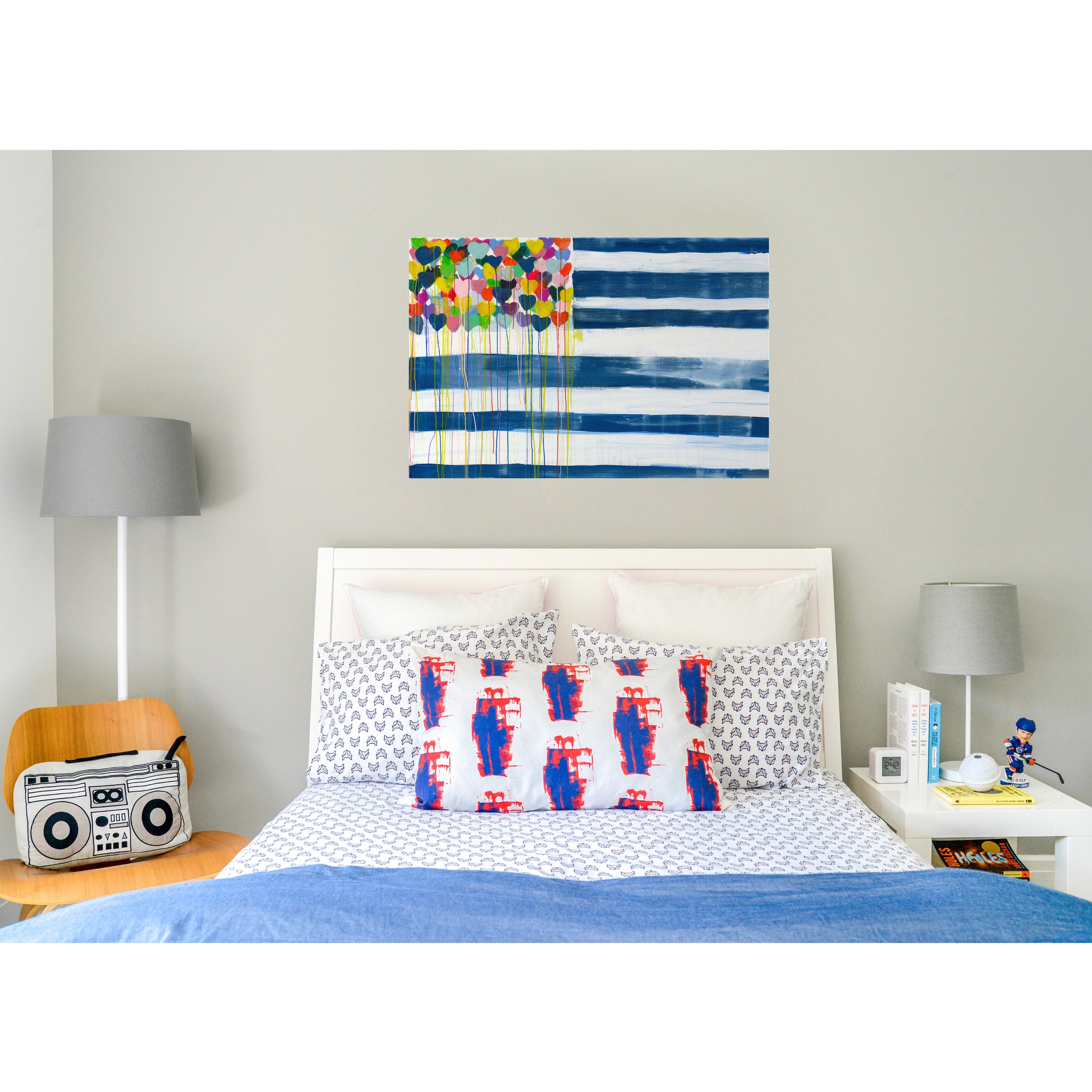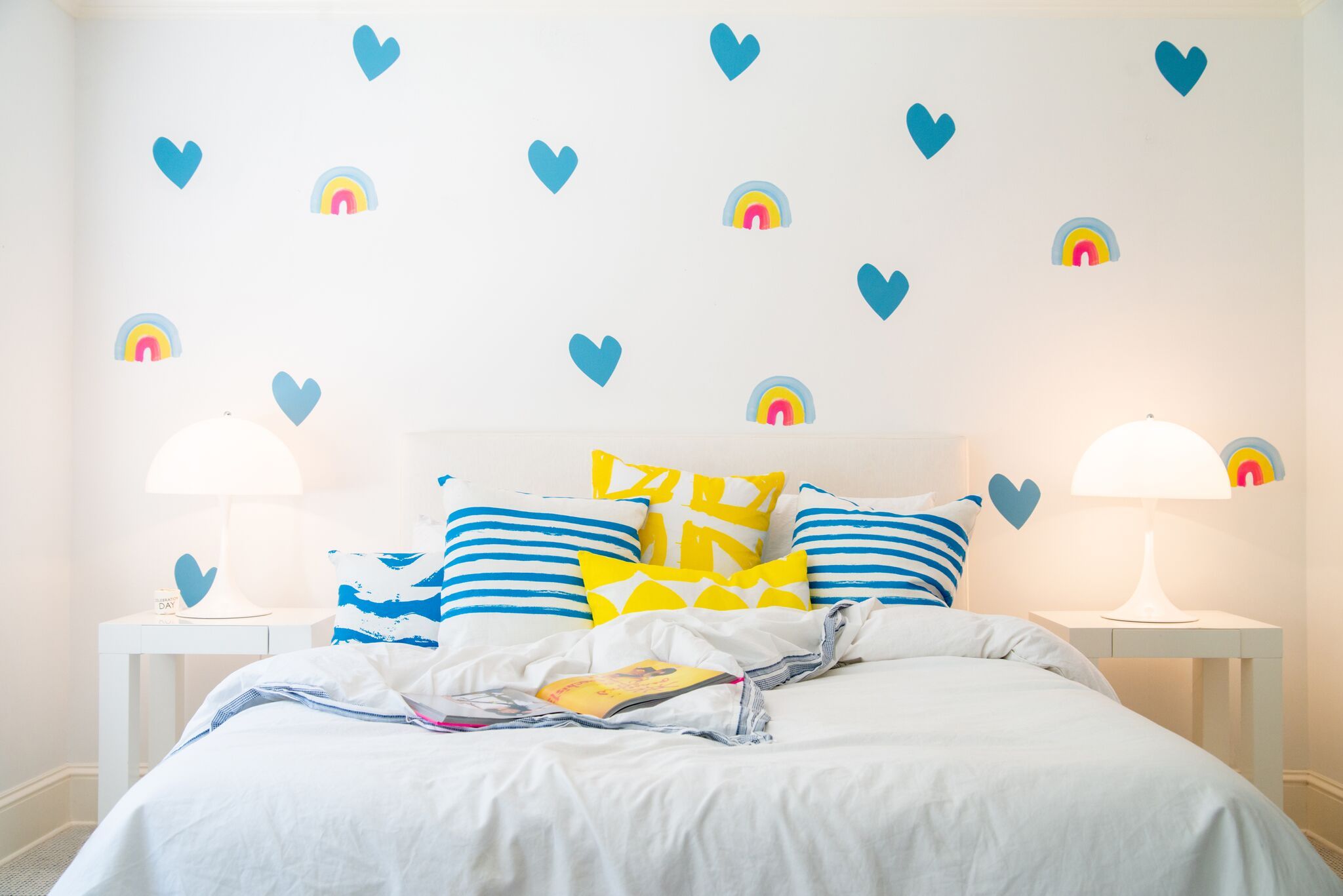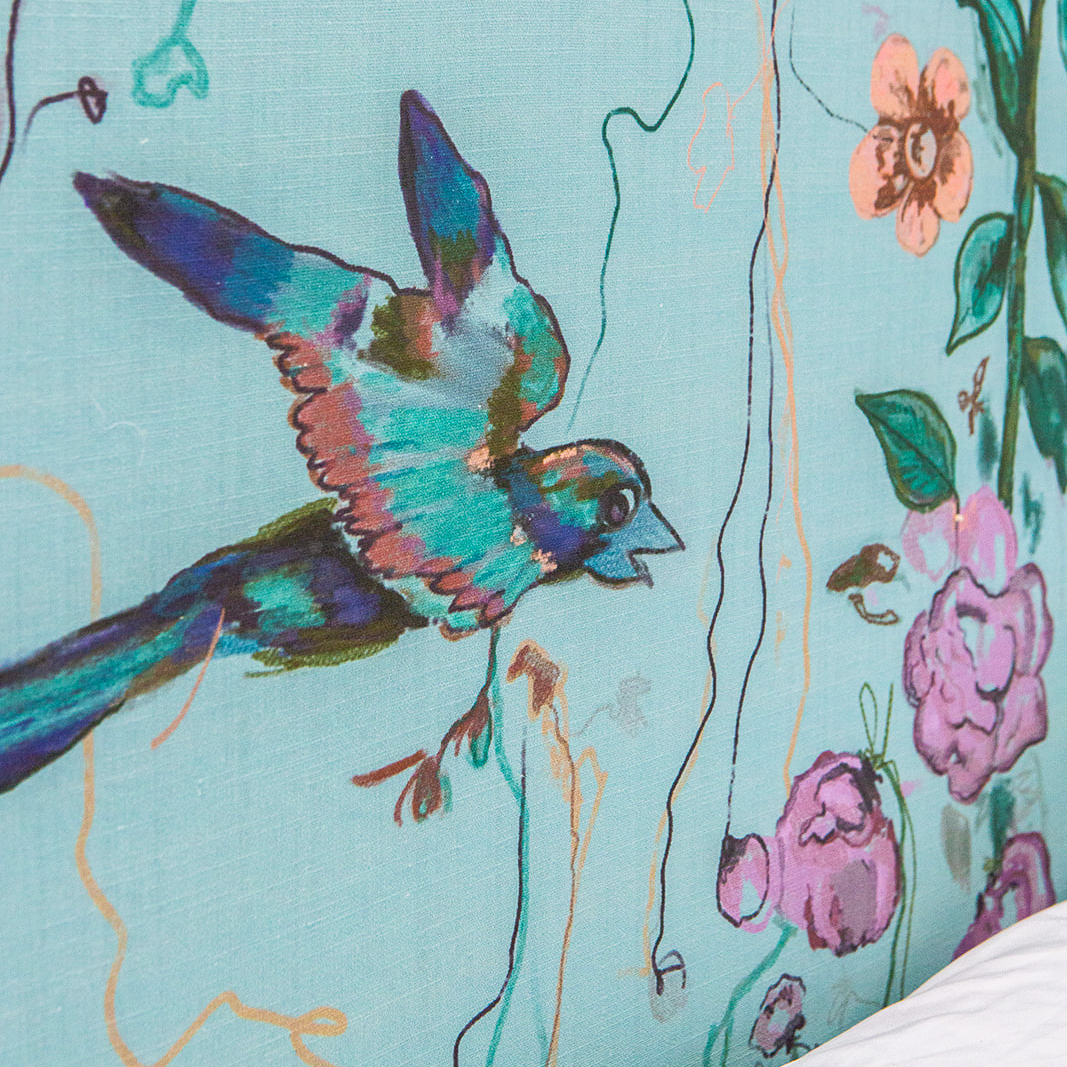 The Kate-Style headboard and matching frame feature artist @windyoconnorofficial’s beautiful Birds of a Feather cotton-linen fabric in aqua. We think it pairs perfectly with this colorful, relaxing respite created by interior designer Holly Phillips of @theenglishroom.