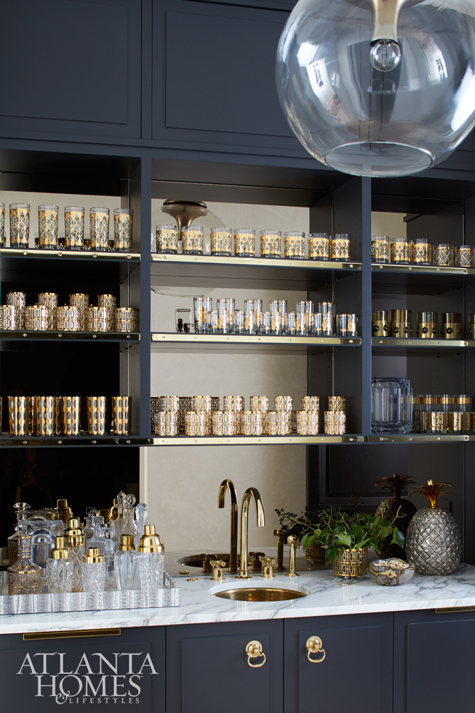Perhaps one of the home’s most intriguing elements is the master bath’s shower, which features custom doors and a window that faces the backyard (there’s a retractable screen for privacy). “We wanted it to feel like you were outside at all times, so we did an outside shower window that looks into your garden,” says Turner.