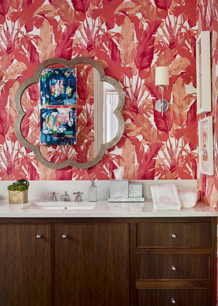 Travelers Palm Wallpaper in Pink & Coral / Thibaut / $80 s/r