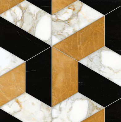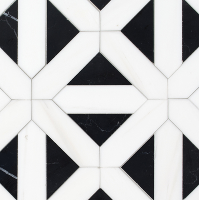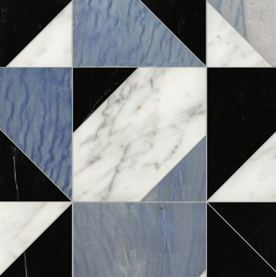 Semplice, which means “simple” in Italian, explores the creation of patterns in classic geometric shapes that become dimensional through the intentional use of color. Using black as a bold accent the patterns evolve into dramatic combinations of color blocked stone. The use of contrasting stone colors imply an optical illusion. In a monochrome palette, the same shapes become more nuanced with subtle color variations caused by the veining inherent in natural stone. All of the mosaics in the Semplice collection can be installed on walls or floors, indoors or out.