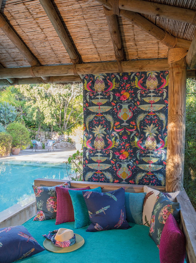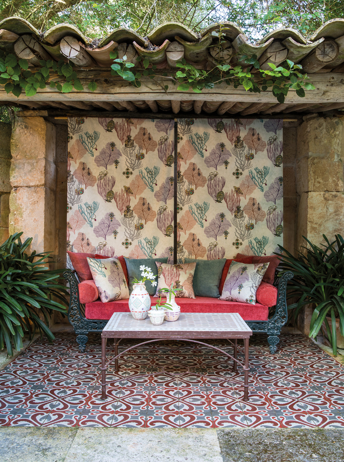Matthew Williamson’s collection for Osborne & Little is named after the village in the hills of the Balearic island of Mallorca near where the international designer has a home and spends several months of the year. These surroundings have inspired embroidered and printed fabrics which are decidedly Mediterranean in mood and colouring.