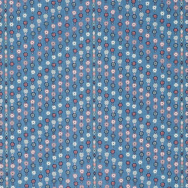 Cosima in Blue/Pink – Small stars work together to create a large chevron motif, punctuated by border-inspired stripes.