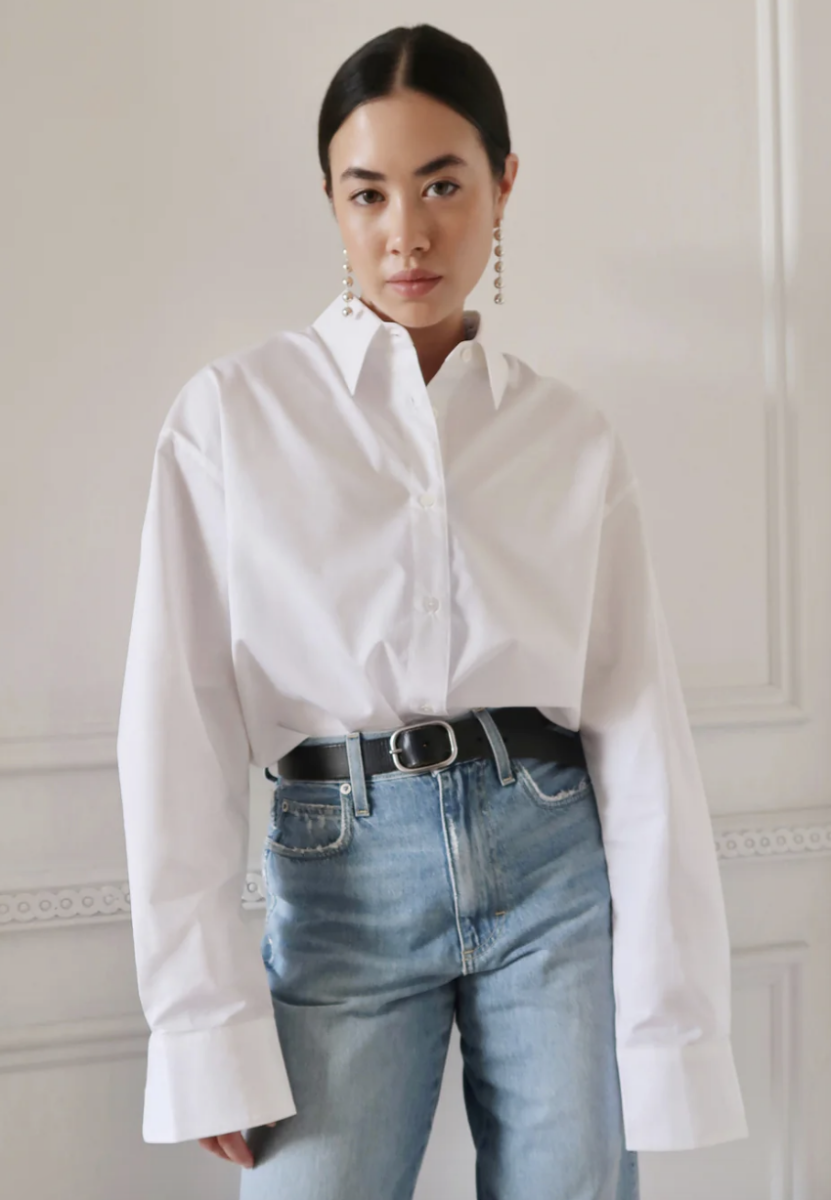 I have worn this shirt 3 times in the past week. It is the perfect menswear inspired shirt in the most luxurious cotton. The sleeves are long so I can roll and scrunch just like I want.