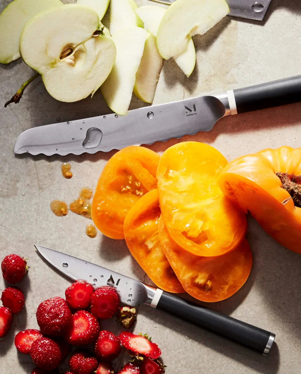 They had me at tomato knife set... I love a tomato sandwich so much in the summer and you need a great serrated knife. This set is the best! I love this grippy cutting board too. As an adult you learn good knives make such a difference.