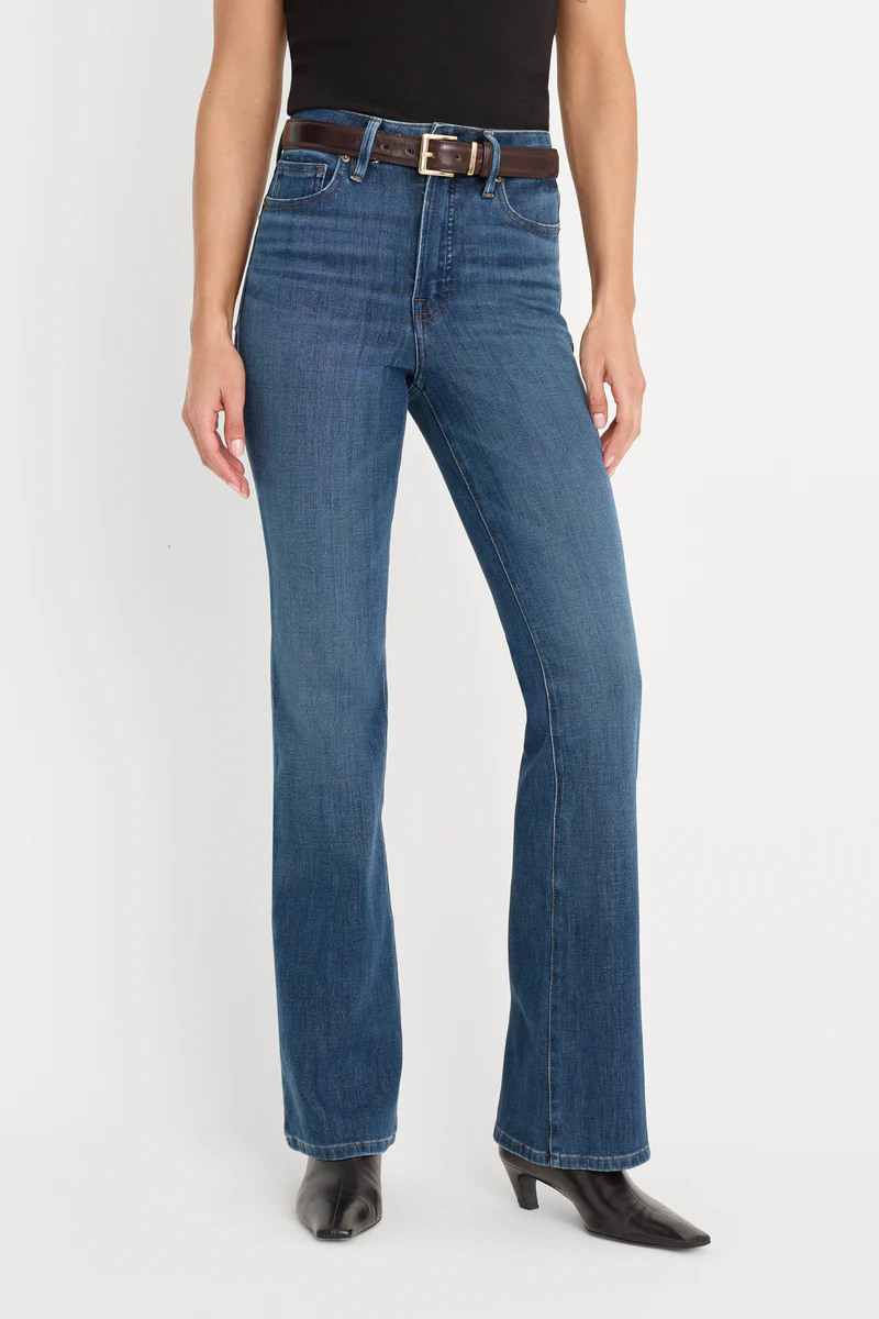 I have favorite new going out jeans. The Good American Soft Tech Good Classic Bootcut Jeans are the perfect fit. They stretch to hug your things and bell out in the most flattering way.