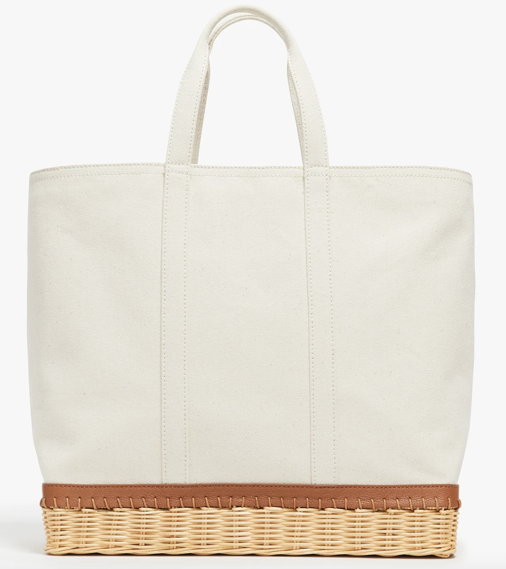 THE GARDNER TOTE is the epitome of summer chic with wicker and cotton canvas.