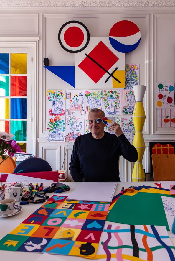 Artist, designer, and fashion creator, Jean-Charles de Castelbajac is a iconic figure in contemporary French creativity. Known for his singular visual language — blending color, collage, symbolic imagery, and poetic gesture — he has long explored the connection between art and everyday life, sacred and popular culture, tradition and innovation.